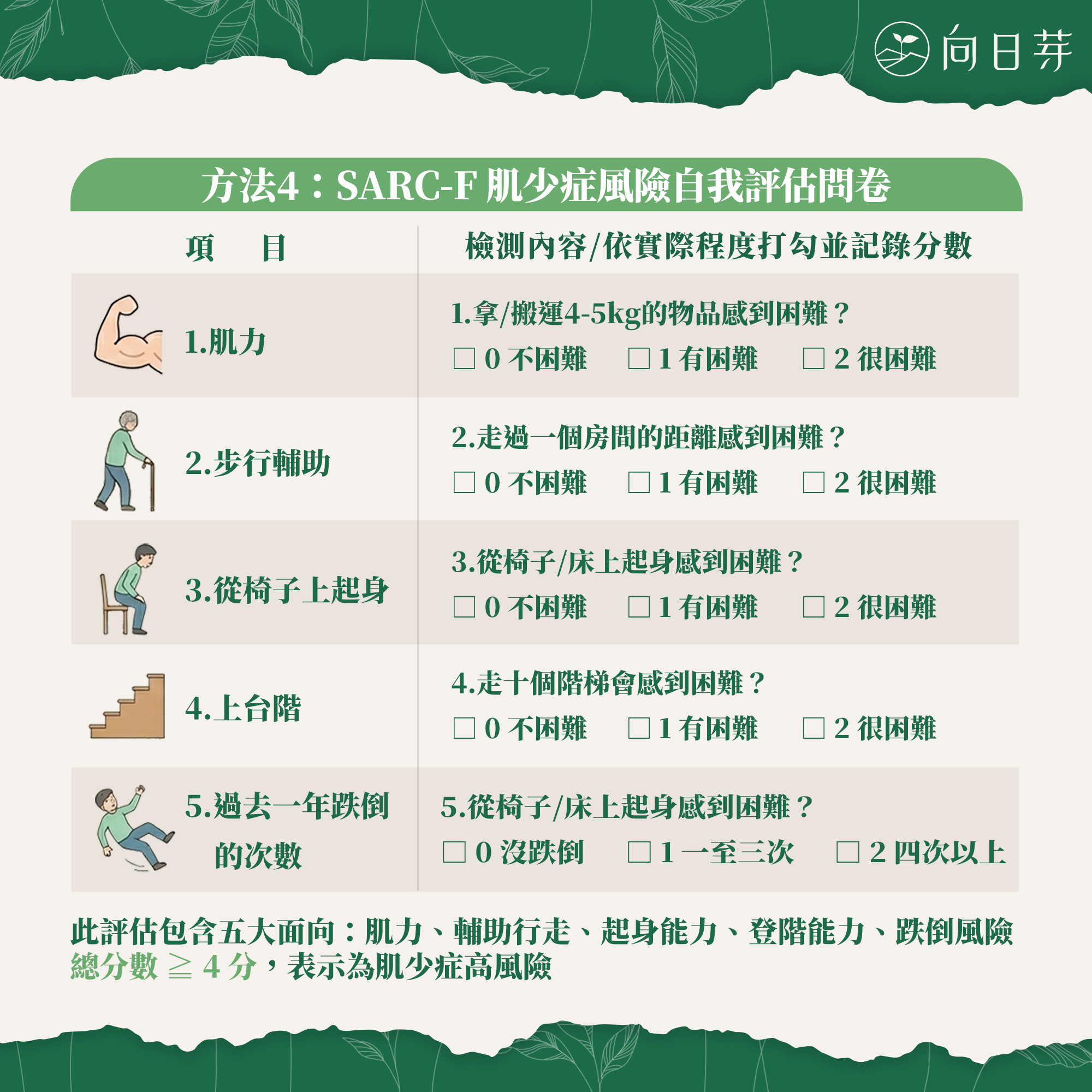 方法四、SARC-F 肌少症風險自我評估問卷