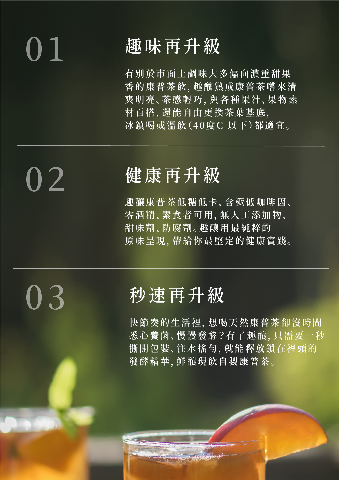 • 百搭康普茶基底,隨時、隨心創意調飲