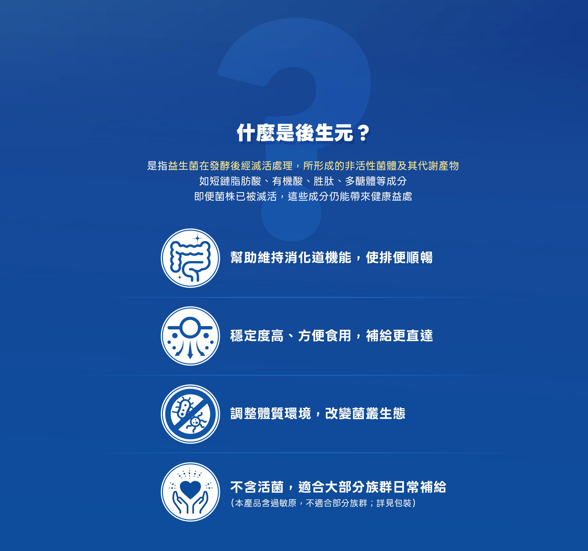 後生元 Postbiotic 新型態 × 不含活菌 × 結構穩定