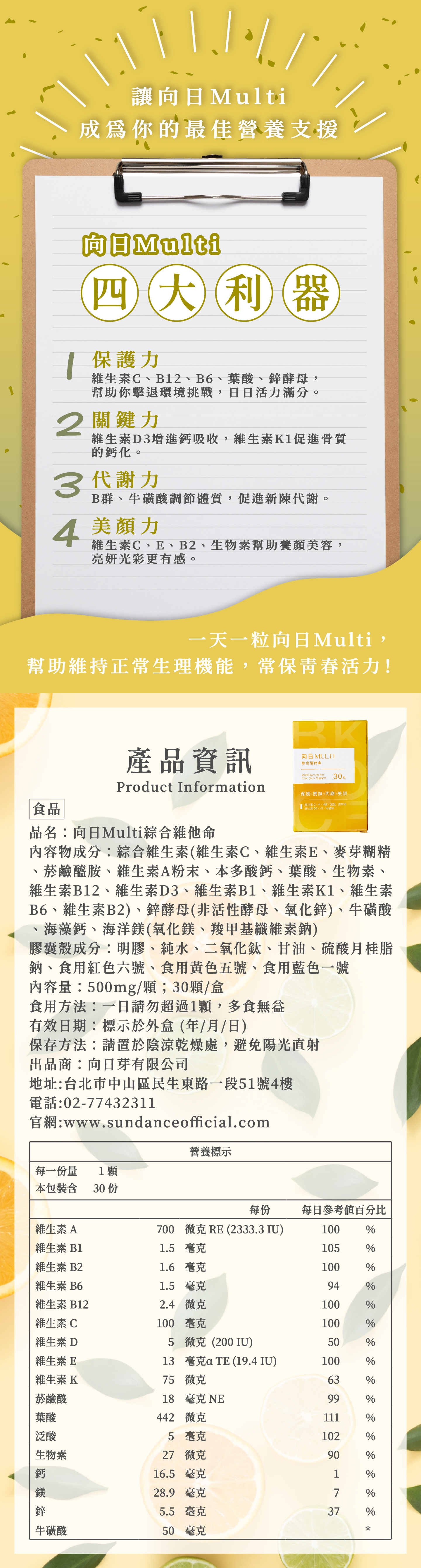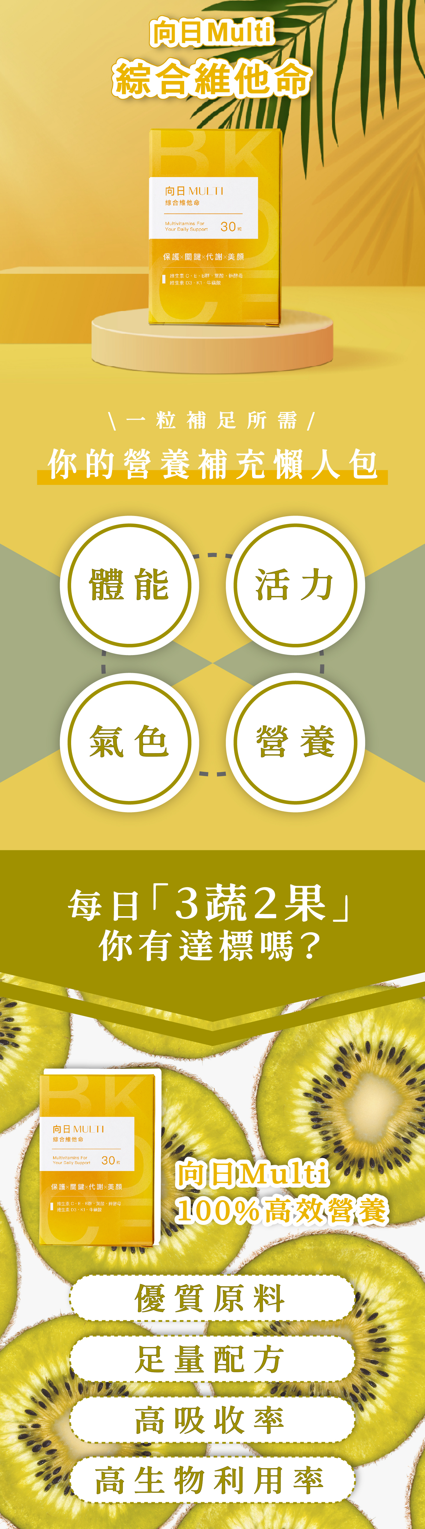 讓向日 Multi 成為你的最佳營養支援,嚴選原料、配方完善、專業把關,日常營養補給快速到位。