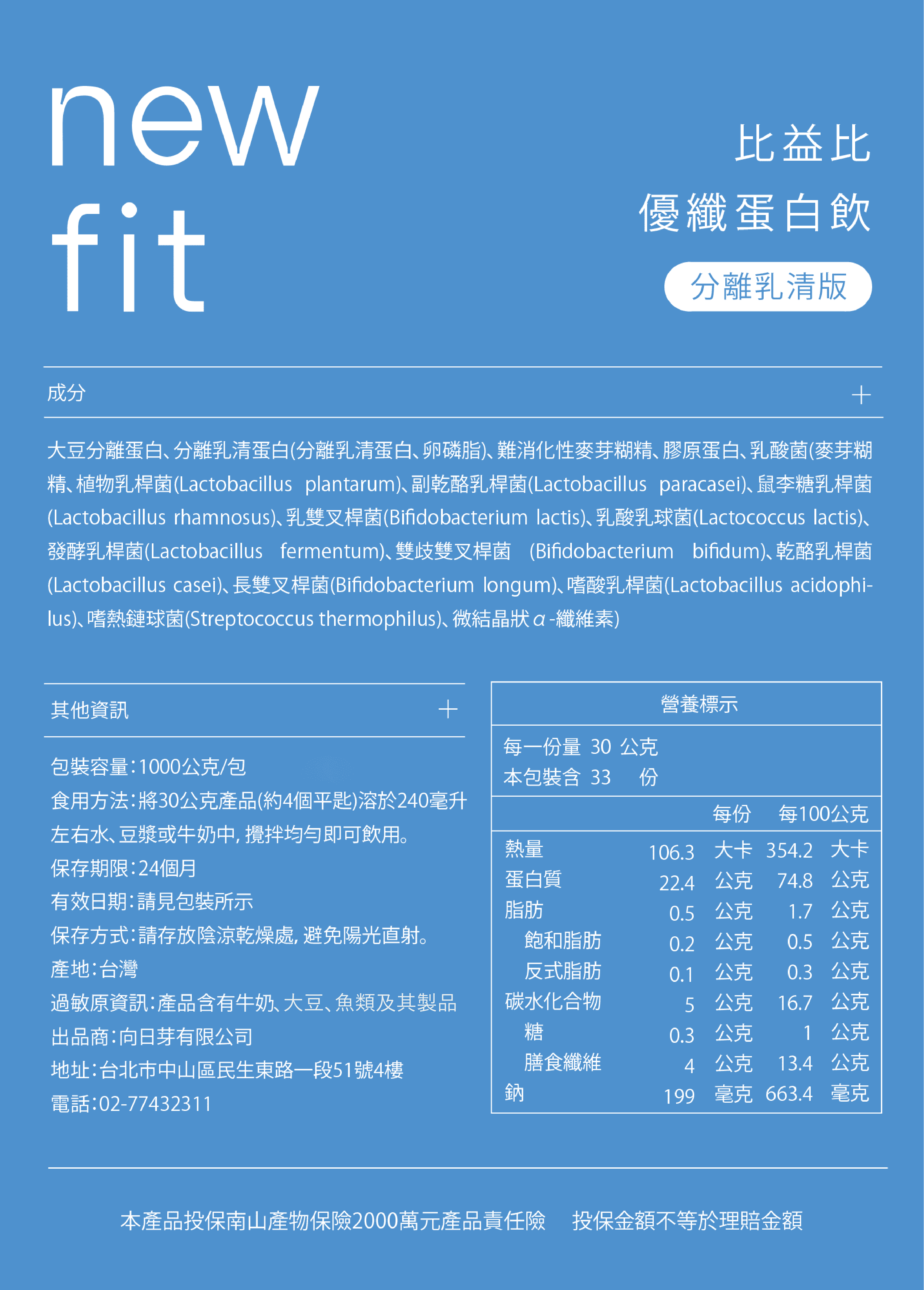 ●	乳清:大豆蛋白=1:2,黃金比例好吸收