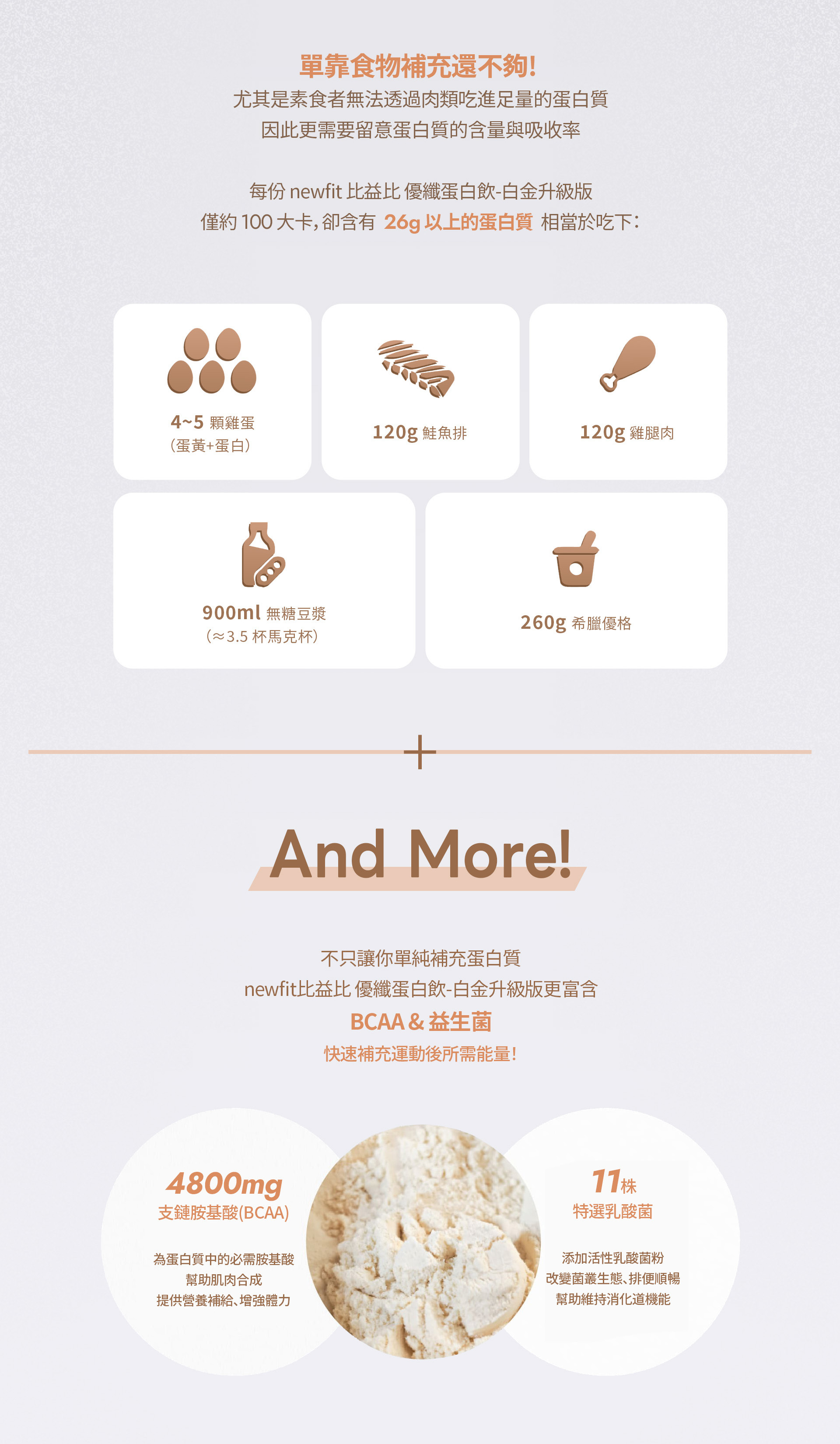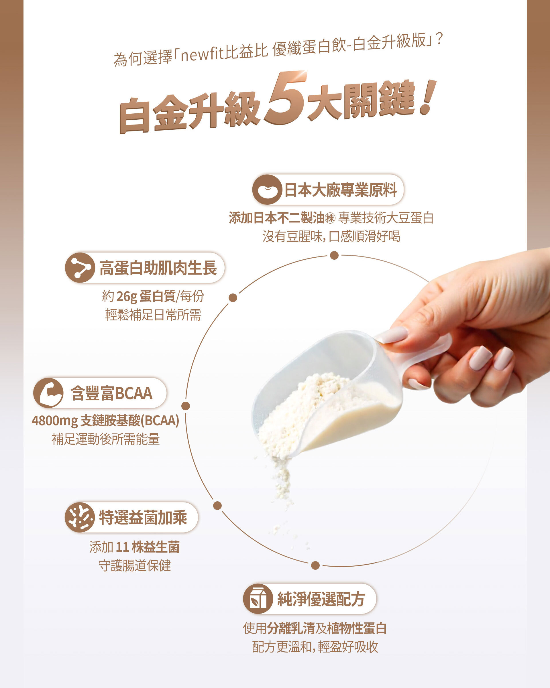 ✔ 每份 26g 優質蛋白,乳清+大豆 1:2 黃金比例