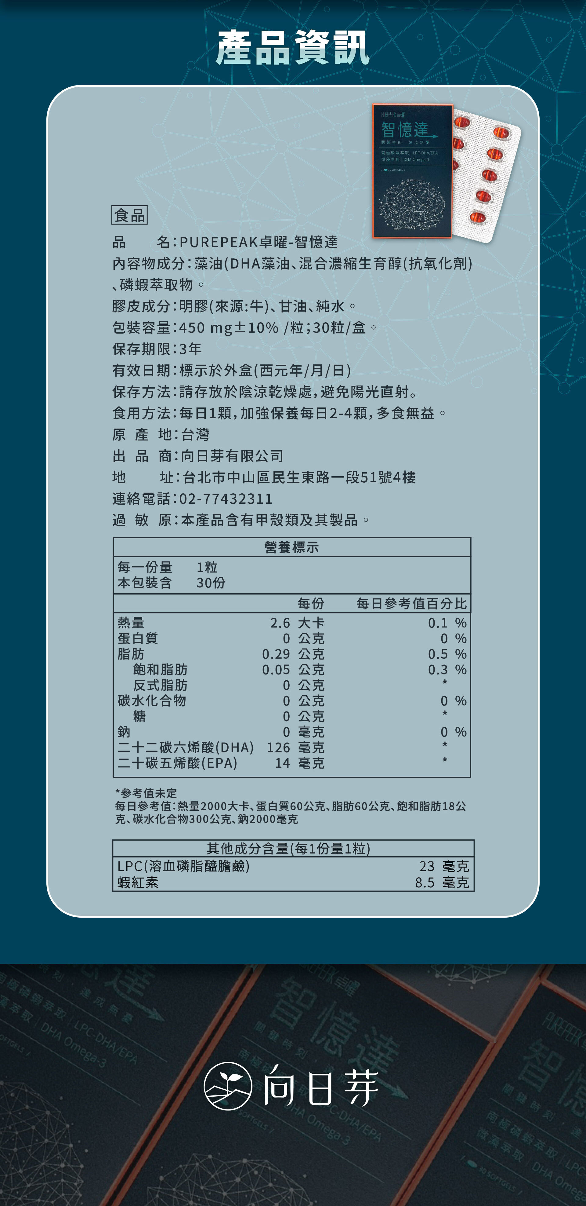 規格:450mg/粒;30粒/盒:建議餐後食用
