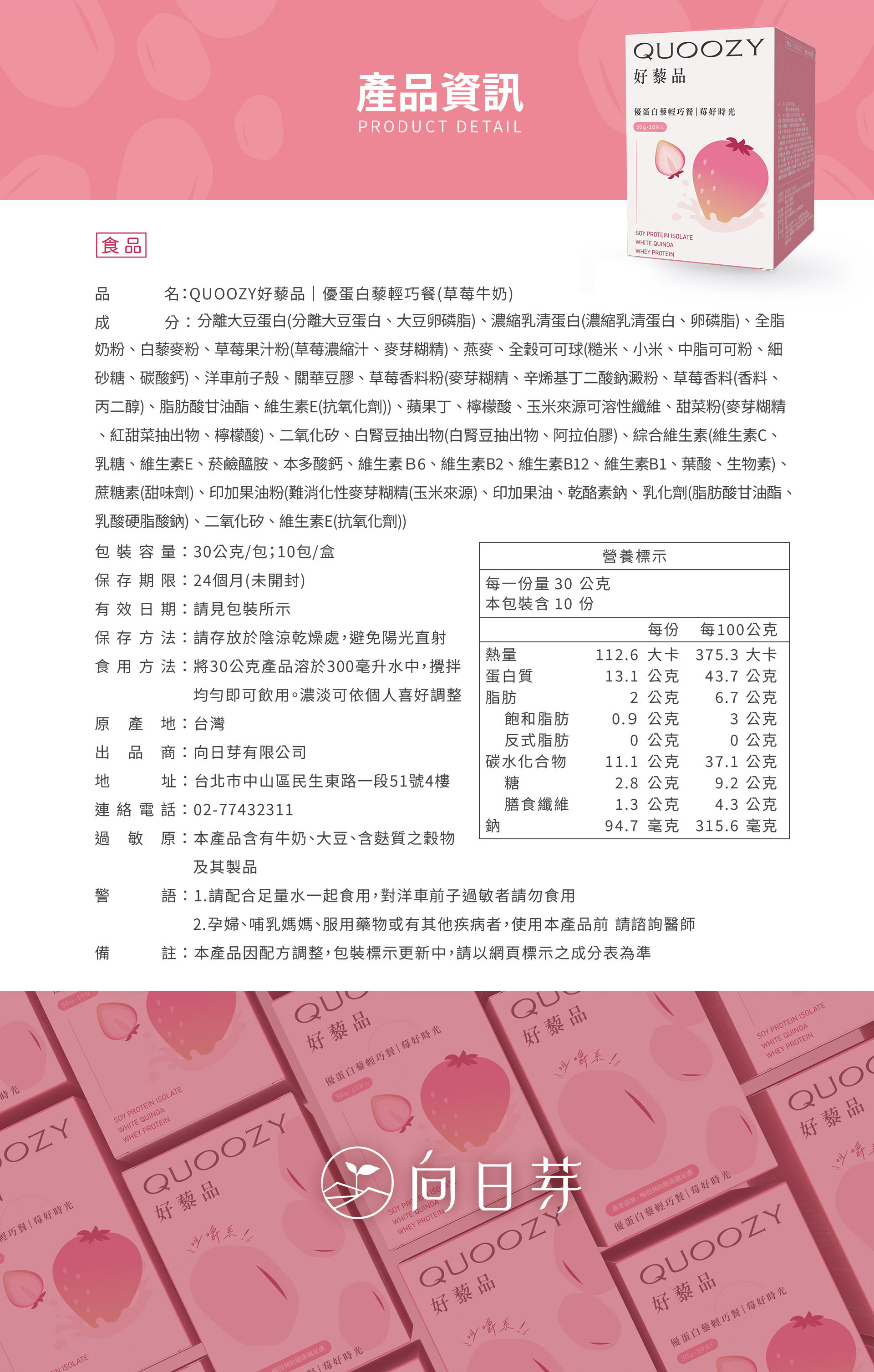 「莓好時光」升級登場,草莓牛奶風味基底,結合白藜麥、燕麥、蘋果丁與可可球,喝得到柔滑、吃得到顆粒,每包僅 112.6 大卡。展現青春美麗、營養補給無負擔。